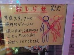據(jù)香港《文匯報(bào)》12日?qǐng)?bào)道,圣誕節(jié)本應(yīng)普天同慶,但對(duì)單身人士而言,到處都是成雙成對(duì)只能覺得郁悶。日本東京八王子市意式餐廳Pia Pia考慮到在平安夜上班員工的感受,特別在門口貼告示,宣布平安夜當(dāng)日謝絕情侶光顧。 據(jù)報(bào)道......