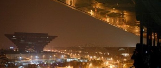 圖為世博園內(nèi)一軸四館將參加“地球一小時(shí)”活動(dòng),29日晚熄燈進(jìn)行燈光調(diào)試