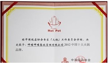 呷哺呷哺獲評(píng)“2012中國(guó)十大火鍋品牌”