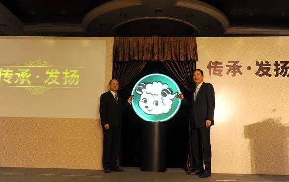 百勝餐飲集團(tuán)中國(guó)事業(yè)部主席兼首席執(zhí)行官蘇敬軾與原小肥羊餐飲連鎖有限公司首席運(yùn)營(yíng)官?gòu)堈己9餐瑸樾》恃蛐?span lang="EN-US">logo揭幕