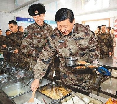 2014年1月26日,習近平在內(nèi)蒙古軍區(qū)邊防某團一連食堂排隊就餐。