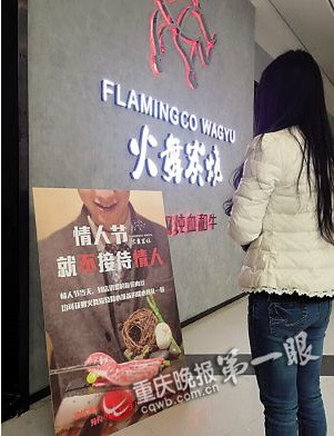 位于南岸區(qū)時(shí)代星光廣場(chǎng)的火舞炭燒主營(yíng)炭燒、烤肉,他們打出的廣告詞是———情人節(jié),就不接待情人(如圖)!拔乙呀(jīng)給服務(wù)員打好招呼,遇到手挽手成雙成對(duì)的恕不接待!崩习宀虖┬瘢槿斯(jié)不能只有耍朋友的開(kāi)心了,單身的人悲傷度過(guò)。他準(zhǔn)備唱反調(diào)到底,他還會(huì)給屆時(shí)前來(lái)就餐單身人士準(zhǔn)備一份禮物。