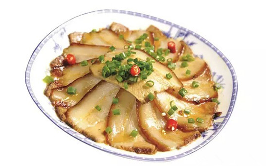 大致做法:1、帶皮五花肉刮洗干凈,改成大方塊,冷水下鍋焯透,撈出晾干。2、將晾好的五花肉抹上一層老抽,再次晾干之后入六成熱油炸至上色,撈出后投入五香醬湯中,小火鹵3小時(shí),撈出晾至溫?zé)釙r(shí),包上保鮮膜定型,放涼備用。3、客人點(diǎn)菜后取醬肉切片,碼入墊蔥絲的盤中,淋上少許東古一品鮮醬油,入蒸箱蒸3分鐘,撒蔥花即可上桌