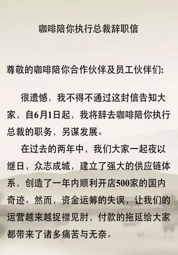 網(wǎng)爆咖啡陪你執(zhí)行總裁辭職信