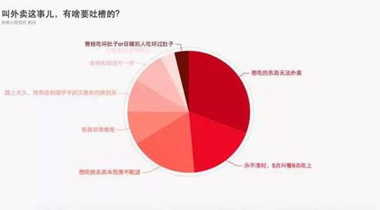 「好奇心研究所」此前做過一次“叫外賣這事兒,有啥要吐槽的?”的投票,我們收獲了共 1871 次表態(tài),結(jié)果表明:對(duì)外賣實(shí)際口味的投訴遠(yuǎn)遠(yuǎn)少于對(duì)幻想中的外賣的憧憬——30.7% 的投票是在抱怨想吃的東西無法外賣;17.7% 在抱怨所在區(qū)域內(nèi)可選外賣太少,想吃的東西都不在配送范圍內(nèi)。