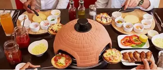 將自己做好的比薩餅放入桌面的小烤爐中,在開心聊天中等侯吧!烤爐時(shí)間當(dāng)然根據(jù)食材來設(shè)定。